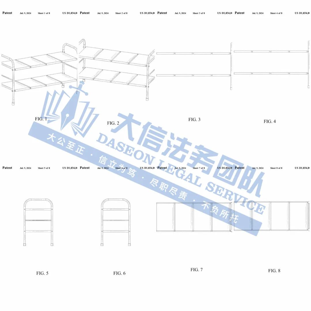 案件分析 此案涉及一项外观专利,专利号为USD1034007S,下证日期:2024年7月9日,下证两个月就开始发起TRO维权,相关跨境卖家注意对照避雷,避免侵权损失! 产品展示