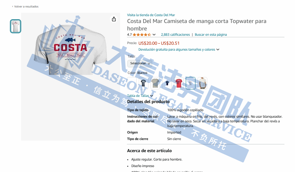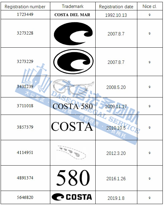 02 COSTA DEL MAR眼镜商标维权 案件号:24-cv-23486 立案时间:2024年9月10日 原告:Costa Del Mar, Inc 代理律所:SMG 原告介绍 原告Costa Del Mar 是FGX International公司的间接全资子公司,是户外生活方式太阳镜的设计、制造和分销领域的领导者。Costa太阳眼镜深受户探险爱好者的青睐,品牌追求功能性,经得起恶劣环境的考验,具有减少眩光和防紫外线的功能,很多名人明星都是其忠实粉丝。 官网:https://www.costadelmar.com/