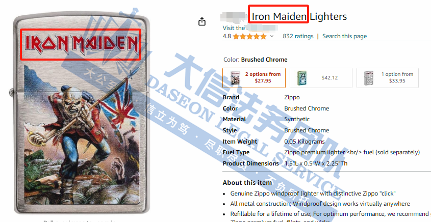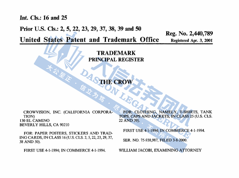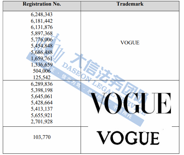 The Crow乌鸦商标+版权维权 案件号:24-cv-08406 立案时间:2024年9月13日 原告:Crowvision, Inc. 代理律所:ARONBERG GOLDGEHN DAVIS & GARMISA 原告介绍 原告《The Crow》乌鸦是部1994年上映的美国电影讲述了一个被谋杀的人以不死之身复活,旨在为他和未婚妻的复仇而战。该电影不仅在票房上表现卓越,名列榜首,影评人一致赞誉了电影的动作场景和视觉风格。该电影获得了众多奖项提名,包括1995年MTV电影奖的最佳电影奖和1995年土星奖的最佳恐怖片奖。 案件分析 此案涉及商标和版权维权,原告注册了多个商品类别,包括但不限于科学仪器、办公用品、服装鞋帽、健身器材等。除此之外还有PAU001813537, PA0000811716, PAU001696542三个版权。相关卖家注意检索下架!避免侵权造成损失! 产品展示 02 Iron Maiden乐队商标+版权维权 案件号:24-cv-08344 立案时间:2024年9月12日 原告:Iron Maiden Holdings Limited 代理律所:TME Law, P.C. 原告介绍 原告Iron Maiden Holdings Limited是一家由英国知名摇滚乐队Iron Maiden成立的录音和出版公司,主要业务涉及音乐制作、发行以及版权管理,同时也涵盖与乐队相关的周边产品,如服装、游戏等。Iron Maiden(铁娘子)是一支英国的重金属乐队,成立于1975年,至今已经拥有超过四十年的历史。铁娘子以其复杂的音乐编排、独特的吉他演奏和强劲的现场表演而闻名。被誉为重金属乐坛的传奇之一。 官网:https://www.ironmaiden.com/ 案件分析 原告在美国注册了多个商标,商标涵盖了多个类目,包括音乐录像类相关服务产品、珠宝、手表、笔记本电脑、笔、包装纸、背包、手袋以及服装等。此外,原告还注册了4个版权图案,未经授权不得擅自使用。侵权风险极高! 版权 产品展示 03 Vogue 美国时尚杂志商标维权 案件号:24-cv-08359 立案时间:2024年9月12日 原告:Advance Magazine Publishers Inc 代理律所:GBC 原告介绍 原告是美国纽约知名的出版公司,隶属于在全球出版业中享有盛誉,旗下拥有多个知名杂志品牌的Condé Nast集团,专注于时尚、知识及文艺类杂志的出版。《VOGUE》是美国康泰纳仕集团旗下的时尚类期刊,创刊于1892年。杂志内容涉及时装、化妆、美容、健康、娱乐和艺术等各个方面,定位是“高格调,非大众”,在美国被称为“时尚圣经”,并在多个国家和地区出版发行。 官网:www.vogue.com 案件分析 此案涉及商标维权,原告时隔一年再次发起TRO,涉及商标主要为“Vogue”,该品牌在很多大类下都注册了Vogue商标。注意不要在产品标题、五点描述和图文详情页里使用该商标。相关卖家注意排查! 产品展示 04 Crye Precision商标维权 案件号:24-cv-08003 立案时间:2024年9月9日 原告:Crye Precision LLC 代理律所:GBC 原告介绍 原告Crye Precision LLC是一家总部位于美国纽约的军事装备制造公司,专门开发和生产高性能军事装备和战术装备。产品包括作战服、背心、头盔、护具、作战装备等,广泛应用于军事、执法和安全领域。Crye Precision 的产品经常被特种部队、执法部门和安全机构选择,并被认为是一些最先进和可靠的装备之一。 官网:https://www.cryeprecision.com/ 案件分析 原告从今年7月起,已经连续发起近10起TRO维权。已经导致351家店铺资金被冻结。原告注册了11个图文商标,包括电子和科学设备、火器、纺织品、服装等,涵盖品类众多。相关卖家及时检索下架,未经授权不能随意使用,侵权风险极大! 产品展示 今天就分享到这里了,感谢你的阅读。大信团队会持续为你带来最新的侵权咨询。想要了解更多内容,可关注我们【大信团队】。 如果有关于店铺大额资金冻结、同行解决不了、缺席判决、多次谈判博弈无法和解的案子可以添加我们联系方式,我们将为你提供最优质的法律服务。 我们始终坚信,法律服务没有捷径,容不得任何滥竽充数的行为。大信法务团队有中美资深律师,在美国TRO诉讼行业深耕多年,处理过上万起TRO侵权案,致力于为中国跨境电商卖家保驾护航!