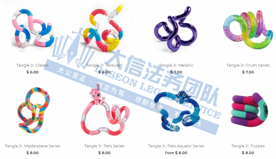 原告Tangle Creations 是一家以其创新和治疗性感官玩具而闻名的公司,尤其是 Tangle® 玩具。Tangle 玩具是一系列相互连接的弯曲部分,可以扭曲、弯曲和操纵成各种形状和图案。Tangle 玩具最初被设计为一种工具,旨在帮助个人提高手部协调性和精细运动技能。然而,它很快就超越了其治疗应用而受到欢迎,并成为所有年龄段的人都喜爱的指尖玩具。还常被用作患有多动症、自闭症或焦虑症的个人的工具,以帮助他们集中注意力和减轻压力。