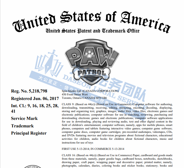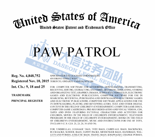 原告Spin Master Ltd.创立于1994年,总部位于加拿大,是一家知名的全球儿童娱乐公司,为全球用户创造、设计、制造玩具及儿童用品,Spin Master以其Paw Patrol(汪汪队立大功)、Bakugan(爆丸)、Hatchimals(魔法蛋)、Rubik’s Cube(魔方)和Gund(泰迪熊)等多个品牌而闻名,其中与美国公司联合制作的深受小朋友喜爱的动画片《Paw Patrol》,并根据此部动画片角色形象开发出多款周边产品。