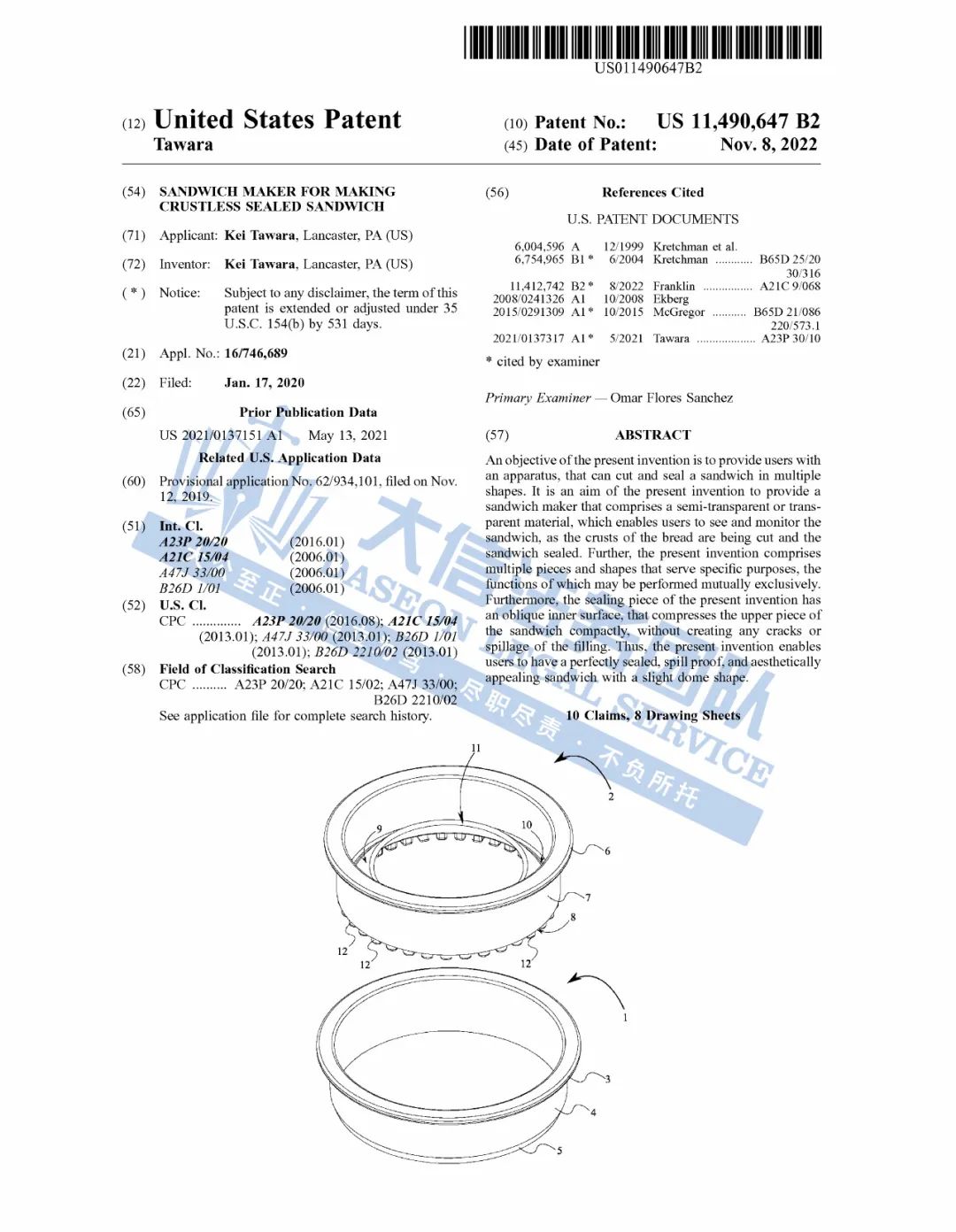 此案涉及三明治封口器专利维权,一项美国外观设计专利USD909809S1 和美国发明专利US11490647B2,卖家选品时一定要注意,避免侵权损失!