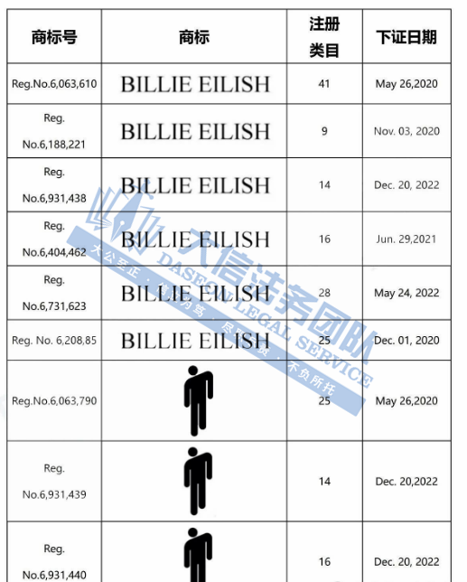 产品展示 02 BILLIE EILISH 比莉·艾利什商标维权 案件号:24-cv-09555 立案时间:2024年10月1日 原告:BRAVADO INTERNATIONAL GROUP MECHANDISING SERVICES, INC. 代理律所:Stevenslee 原告介绍 原告公司是一家明星营销公司,本次维权的比莉·艾利什(Billie Eilish),是一位美国创作女歌手,创作了Ocean Eyes、Bad Guy、Everything I Wanted等大热单曲,并获得了众多奖项。她于2021年入选《时代周刊》“全球最具影响力百人榜” ,2022年被BBC评为“全球100位最具影响力女性”。