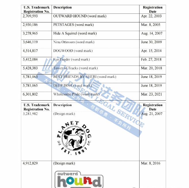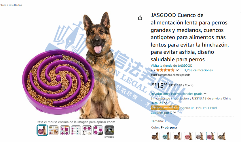 案件分析 此案涉及专利维权,此外原告旗下还注册了多个商标,宠物玩具、游戏、装备、项圈和喂食器多款产品在各大电商平台都十分热销。亚马逊多款产品销售链接留评超过10w+。跨境卖家注意检索下架,避免造成损失!