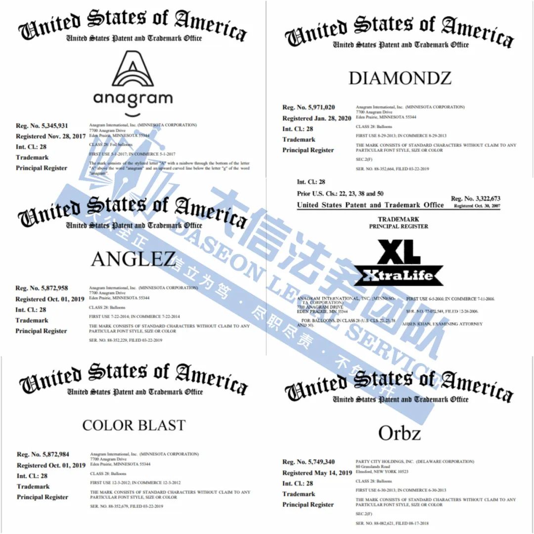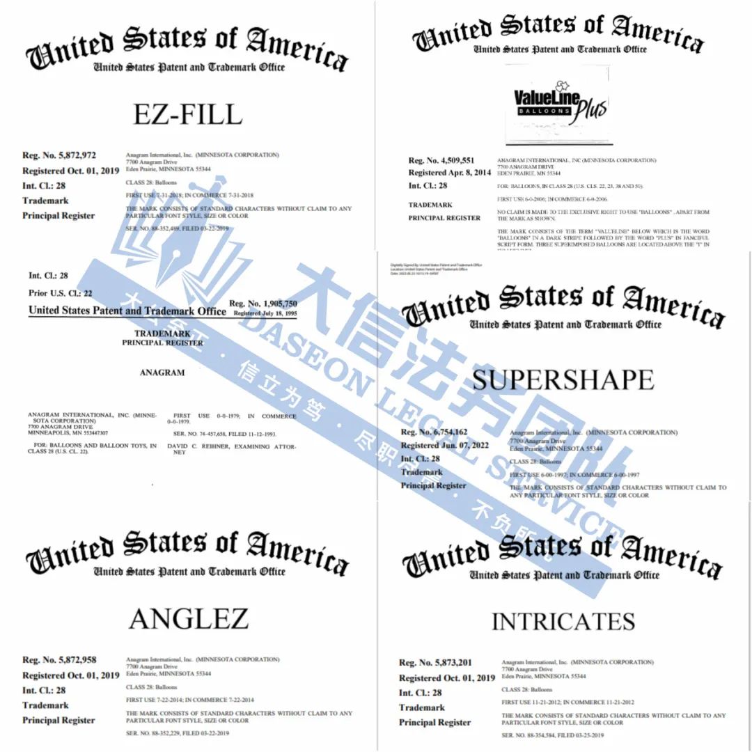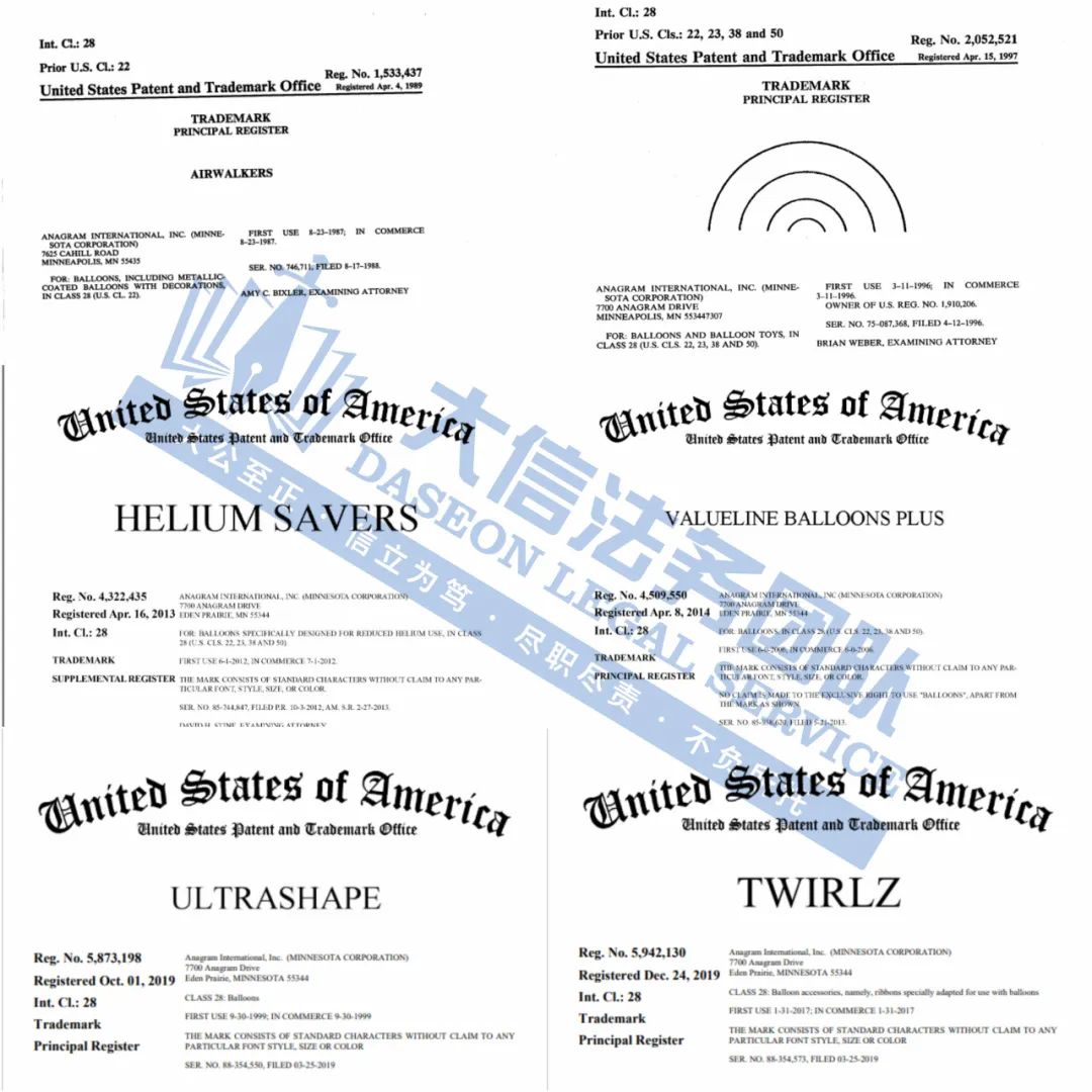 Anagram派对气球版权+商标维权 案件号:24-cv-10780、24-cv-10794、24-cv-10791 立案时间:2024年10月18日 原告:Anagram International, LLC 代理律所:Nixon Peabody LLP、HSP 原告介绍 原告Anagram International, LLC 是一家专注于生产气球的著名公司。成立于1977年,总部位于明尼苏达州的伊甸草原,Anagram气球可以提供多种形状、尺寸和颜色的气球,包括圆形、心形、动物形状等,甚至可以根据客户诉求个性化定制气球类型,涵盖铝箔气球、乳胶气球以及派对装饰品和配件满足不同消费者和场合的需求。 官网: https://anagramballoons.com