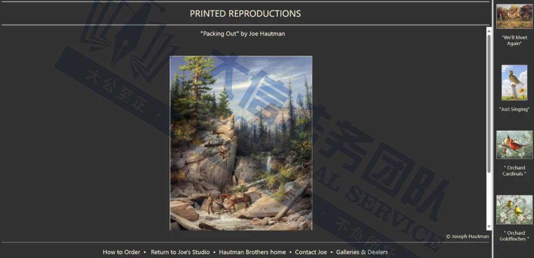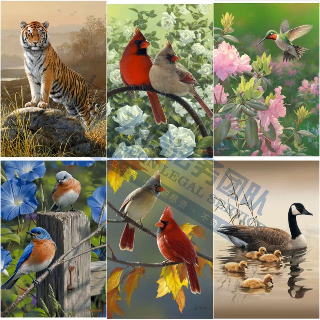 03 Joseph Murray Hautman动物版权 案件号:24-cv-10639 立案时间:2024年10月18日 原告:Joseph Murray Hautman 代理律所:Keith 原告介绍 原告是一位来自美国的艺术家和画家,自幼便对绘画充满热情,以其对野生动物题材的独特诠释而闻名。他善于捕捉鸟类的特征和姿态,并通过细腻的画笔技巧将其栩栩如生地呈现在画布上。他能够精确地描绘每一根羽毛、每一条纹理,使观众能够感受到鸟类的真实质,并且他善于运用光影效果和色彩的层次感,使画面更加生动和立体。他的画作不仅展现了精湛的艺术技巧,更深刻地反映了他对大自然及野生动物的深厚情感。 案件分析 此案共涉及20张版权画,主要以鸟类和各种野生动物为主,相关卖家要注意检索自家产品,未经授权不得擅自使用,侵权风险极高! 产品展示
