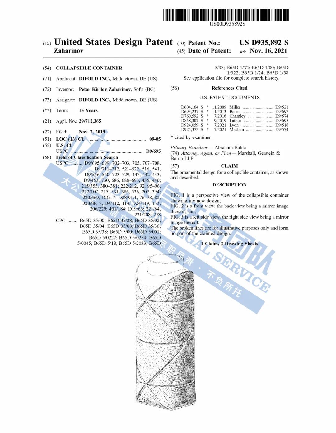 案件分析 此案涉及版权维权,原告注册了200多张版权,以下是部分作品,除次之外,官网的作品,未经允许不得擅自使用,否则会有侵权风险! 产品展示 04 Origami Bottle折叠水杯专利维权 案件号:24-cv-61997 立案时间:2024年10月24日 原告:DiFOLD Inc. 代理律所:Boies Schiller Flexner LLP 原告介绍 原告DiFOLD Inc.是一家专注于制造和销售便捷、可重复使用和折叠的水瓶等容器的企业,DiFOLD的旗舰产品是Origami Bottle折叠水杯,一款采用优质植物材料制成的750毫升可折叠水瓶。该水杯的特色在于其折叠设计,可以大幅减少体积,便于携带和储存,同时减少了对一次性用品的依赖。瓶子是专利技术的旗舰产品,展示了DiFOLD的一种可折叠设计,其应用范围远不止瓶子。