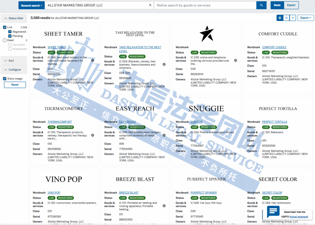 案件分析 此案涉及商标维权,原告旗下注册商标多达35个,涵盖了厨房洁具、服装鞋帽、皮革工具、家具和办公用品等类别,侵权风险极高!跨境卖家尽快检索下架! 产品展示 今天就分享到这里了,感谢你的阅读。大信团队会持续为你带来最新的侵权咨询。想要了解更多内容,可关注我们【大信团队】。 我们始终坚信,法律服务没有捷径,容不得任何滥竽充数的行为。大信法务团队有中美资深律师,在美国TRO诉讼行业深耕多年,处理过上万起TRO侵权案,致力于为中国跨境电商卖家保驾护航! 如果有关于店铺大额资金冻结、同行解决不了、缺席判决、多次谈判博弈无法和解的案子可以添加我们联系方式,我们将为你提供最优质的法律服务。