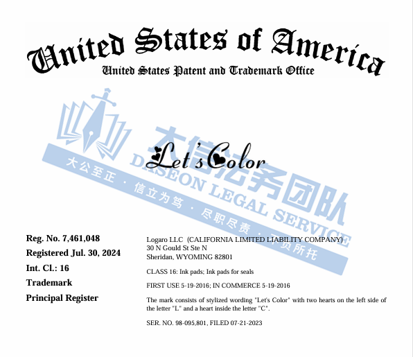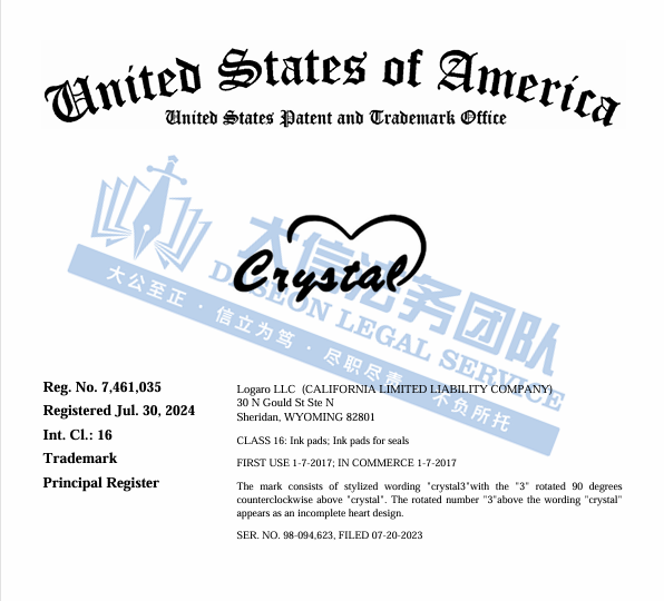 案件分析 此案涉及商标维权,2024年7月30日在美国注册并下证了CRYSTAL3和LET’S COLOR两个商标,均注册在第16印章用印台大类;除此之外,于2024年8月13日注册并下证了SELECTOR II商标,注册在06测量仪器和设备大类。跨境卖家在选品时要注意避开! 产品展示 今天就分享到这里了,感谢你的阅读。大信团队会持续为你带来最新的侵权咨询。想要了解更多内容,可关注我们【大信团队】。 我们始终坚信,法律服务没有捷径,容不得任何滥竽充数的行为。大信法务团队有中美资深律师,在美国TRO诉讼行业深耕多年,处理过上万起TRO侵权案,致力于为中国跨境电商卖家保驾护航! 如果有关于店铺大额资金冻结、同行解决不了、缺席判决、多次谈判博弈无法和解的案子可以添加我们联系方式,我们将为你提供最优质的法律服务。