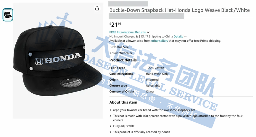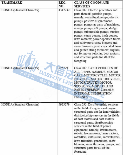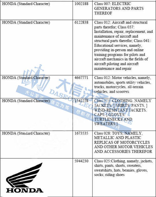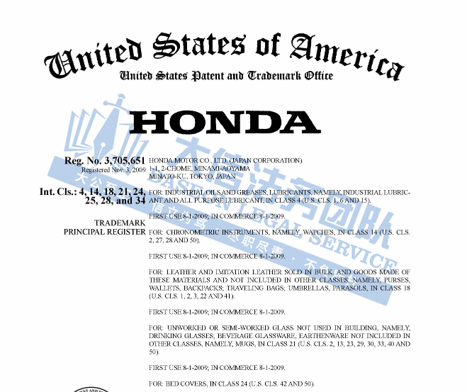03 Honda 本田商标维权 案件号:24-cv-00568、24-cv-24251、24-cv-62042 立案时间:2024年10月30日、2024年10月31日 原告:American Honda Motor Co., Inc. 代理律所:The Brickell Ip Group, PLLC 原告介绍 原告American Honda Co.Inc.是日本本田汽车公司在美国设立的分公司,主要负责本田品牌在北美市场的销售、生产和服务。Honda 本田品牌的核心理念是创新与环保。在美国市场,Honda 本田推出了如 Civic、Accord 和 CR-V 等知名汽车车型,并在摩托车领域发布了Gold Wing和 CBR 系列,成为多个领域的领先者。Honda 本田始终致力于为消费者带来优质、安全和环保的产品体验。