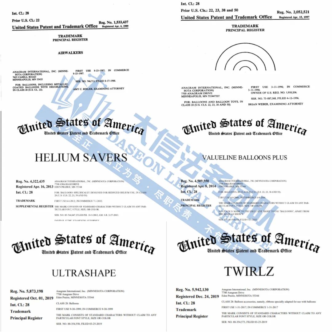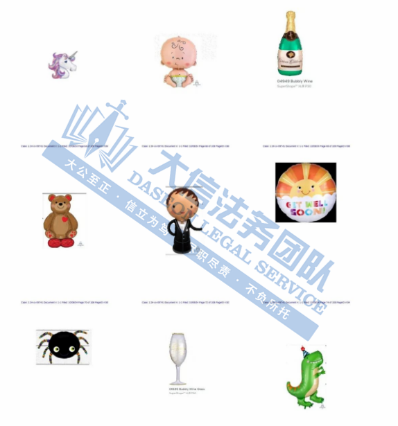 案件分析 此次维权除了52张气球的版权,还增加了24个商标,这已经是原告发起的第7次维权,再次发案!本次又新增了多张版权图,以下是部份气球版权商标信息,未经授权不能擅自使用,侵权风险极高