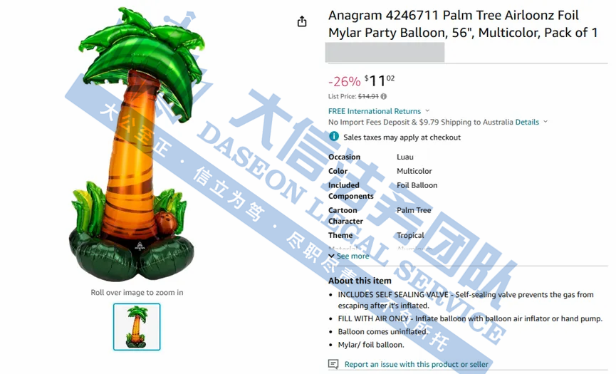案件分析 此案是一起匿名版权维权,涉及产品是一款彩色的六边形漂浮饮水站。以下是部分版权信息,相关跨境卖家尽快检索下架,以免造成侵权损失! 产品展示 02 Anagram派对气球版权+商标维权 案件号:24-cv-11378 立案时间:2024年11月5日 原告:Anagram International, LLC 代理律所:Keith 原告介绍 原告Anagram International, LLC 是一家专注于生产气球的著名公司。成立于1977年,总部位于明尼苏达州的伊甸草原,Anagram气球可以提供多种形状、尺寸和颜色的气球,包括圆形、心形、动物形状等,甚至可以根据客户诉求个性化定制气球类型,涵盖铝箔气球、乳胶气球以及派对装饰品和配件满足不同消费者和场合的需求。 官网: https://anagramballoons.com