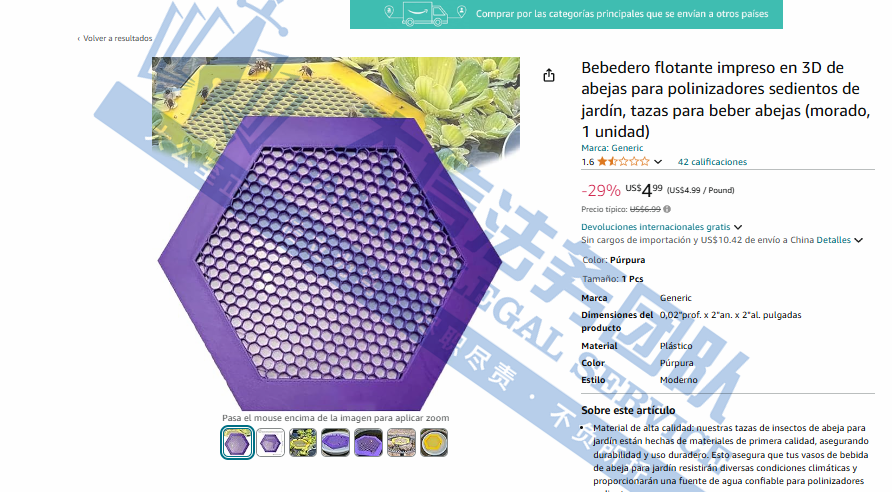 BEE Island 漂浮蜜蜂岛版权维权 案件号:24-cv-10987 立案时间:2024年10月25日 原告:L&C Goods, LLC 代理律所:Sullivan & Carter LLP 原告介绍 原告是一家美国宾夕法尼亚州的企业,于2023年成立。专注于开发养蜂工具,用品、配件等,其主打产品是浮动蜜蜂岛,作为蜜蜂喝水的站台。这款六角形装置能够漂浮在水面上,为蜜蜂提供一个安全、便捷的水站。既实用又美观。它能让蜜蜂在水面上安全饮水,即使落水也能轻松返回。这款产品不仅提升了蜜蜂的生活质量,也为花园增添了一抹自然风情。