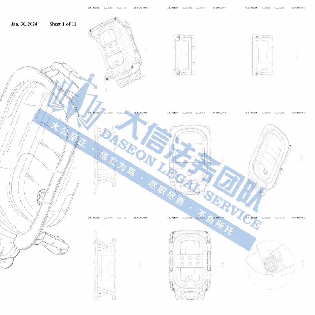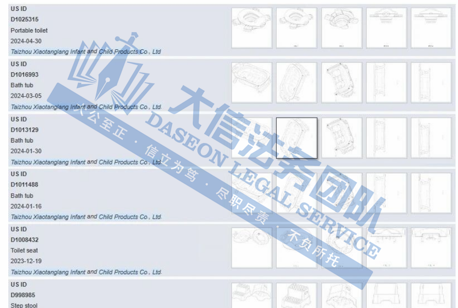 案件分析 该原告方在美国共注册了11个专利产品,涵盖移动厕所、浴缸、马桶座、便盆椅、脚凳等多个品类。此案涉及外观专利维权,专利号:USD1013129S1,于2024年1月30日下证,值得注意的是,专利为外观专利,只要外观相似,都有侵权风险,跨境买家尽快检索下架!