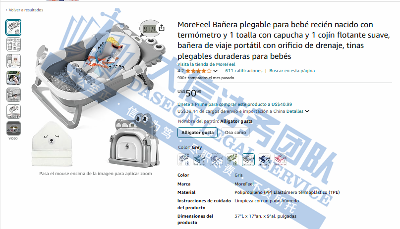 01 BATH TUB 婴儿浴盆专利维权 案件号:24-cv-62133 立案时间:2024年11月11日 原告:TAIZHOU XIAOTANGLANG INFANT AND CHILD PRODUCTS CO., 代理律所:Heitner Legal 原告介绍 原告是国人卖家,成立于2019年,主营婴儿厕所、婴儿高脚椅、婴儿浴缸、儿童之家储物等产品。此次维权的是一款便携式婴儿浴缸,并附有实时温度传感。这款浴缸专为婴幼儿设计,折叠设计节省空间,配备温度计和变色塞子确保水温适中,为宝宝提供安全舒适的沐浴体验。