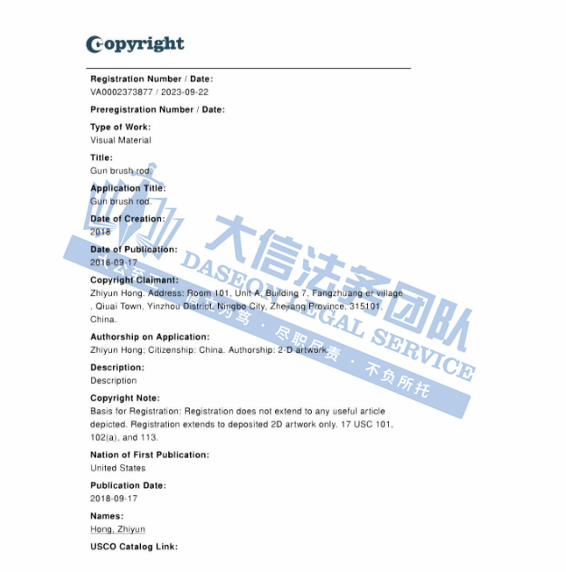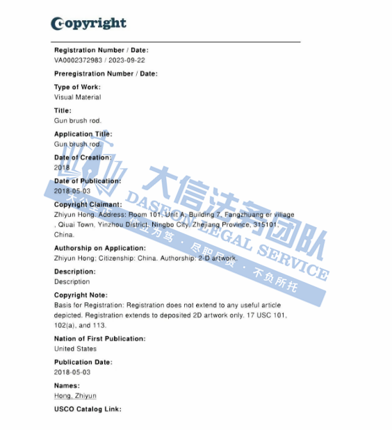 案件分析 此案涉及版权维权,以下是原告的注册版权图,版权号为:VA0002373877,注册时间是2023年9月22日。相关跨境卖家尽快检索下架!避免TRO侵权损失! 产品展示 今天就分享到这里了,感谢你的阅读。大信团队会持续为你带来最新的侵权咨询。想要了解更多内容,可关注我们【大信团队】。 我们始终坚信,法律服务没有捷径,容不得任何滥竽充数的行为。大信法务团队有中美资深律师,在美国TRO诉讼行业深耕多年,处理过上万起TRO侵权案,致力于为中国跨境电商卖家保驾护航! 如果有关于店铺大额资金冻结、同行解决不了、缺席判决、多次谈判博弈无法和解的案子可以添加我们联系方式,我们将为你提供最优质的法律服务。