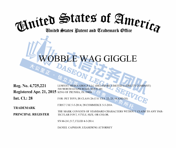 案件分析 此案涉及商标和版权双重维权,在美国拥有50个注册商标,近年来品牌针对其所有权的品牌多次维权,冻结数千跨境店铺。此案涉及的是一款名为Wobble Wag Giggle的狗狗互动玩具,在美国分别注册有多个版权和1个商标,属于匿名维权案件,目前已经冻结387家店铺,跨境卖家注意对照下架! 产品展示