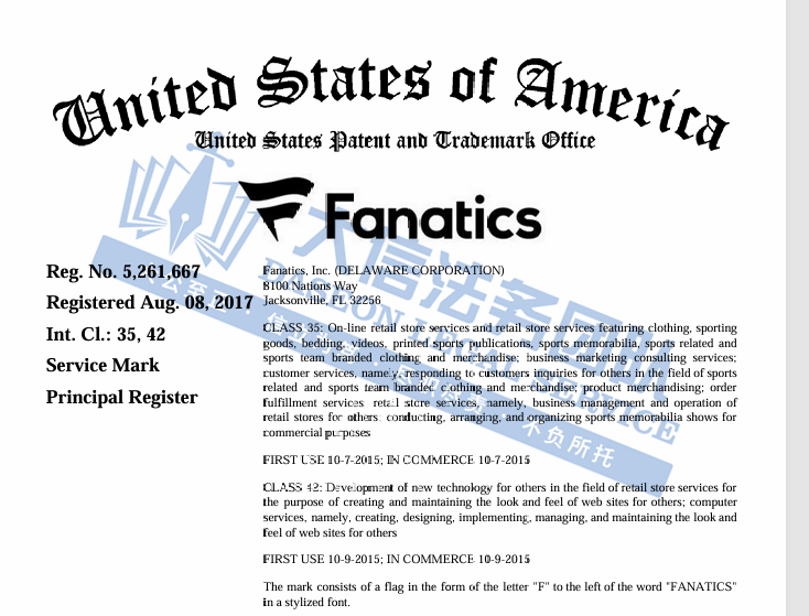 03 Fanatics商标维权 案件号:24-cv-24476 立案时间:2024年11月13日 原告:Fanatics, LLC 代理律所:Stephen M. Gaffigan 原告介绍 原告是一家成立于1995年的专业体育官方特许商品公司,Fanatics经营有300多个联赛、品牌的授权商品,包括职业联盟和数百所高校的特许衣帽鞋服等。合作对象覆盖了全美几乎所有职业球队和大学联盟,如NBA、NFL、MLB、NHL、MLS等。此外,Fanatics还与多支意大利和拉美职业球队有合作协议。在体育藏品业务方面取得了显著进展,包括与各大职业体育联赛达成球星卡制作授权协议,并成立了Fanatics Auctions进行藏品拍卖以及进军直播带货领域的Fanatics Live。