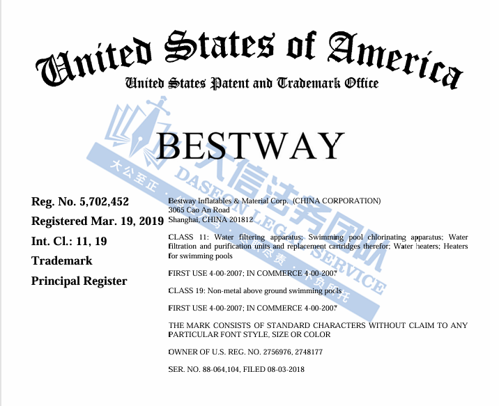 案件分析 此案涉及商标维权,原告旗下3个图文商标,关键词:BESTWAY,主要注册在第11类(照明和制冷设备),第19类(建筑材料),第9类(电子产品),第12类(交通工具),第20类(家具),第28类(玩具与运动器材),原告曾多次维权,侵权风险极高,跨境卖家注意检索下架! 案情进展