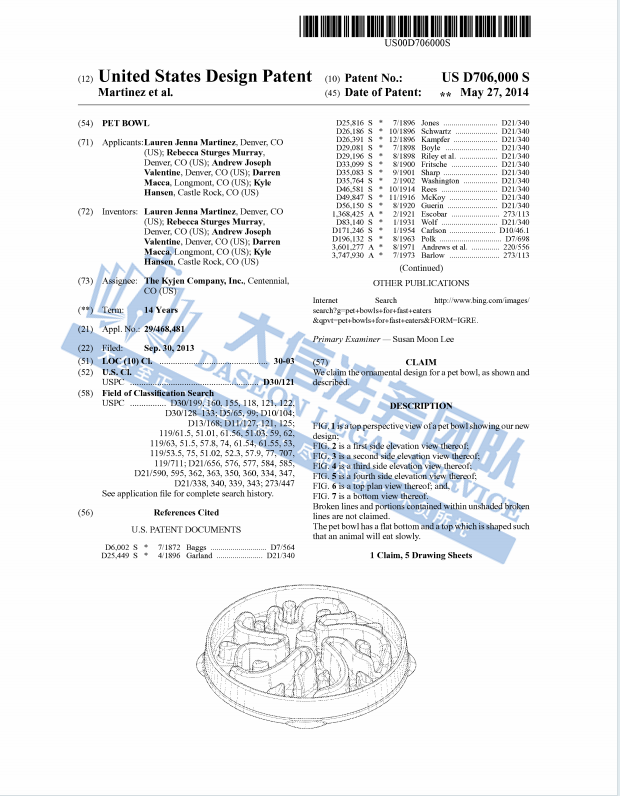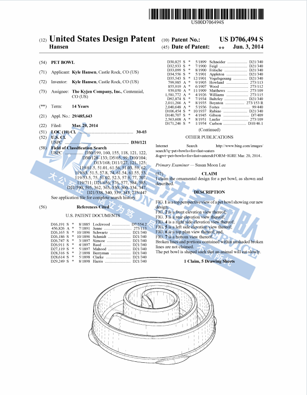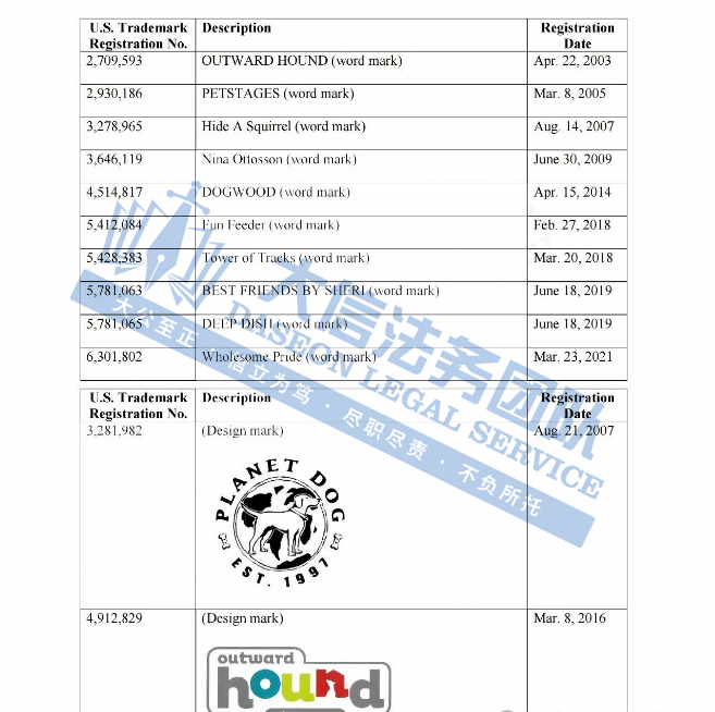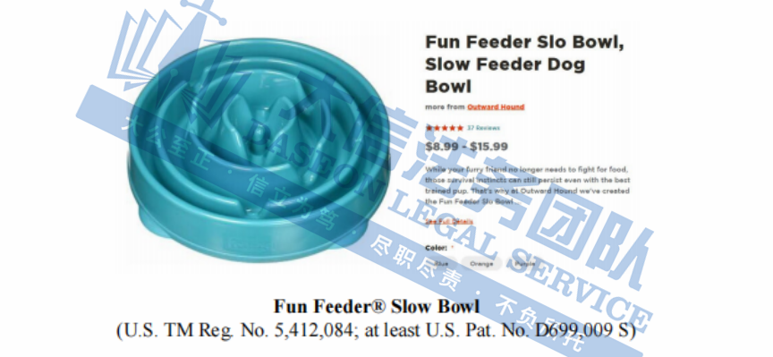 案件分析 此案涉及专利为外观专利,本案未公开维权专利文件,不过根据诉状书表示涉案专利是2024年8月27日下证的door knockers(门环),检索到原告名下有一项符合描述的外观专利D1039961。注意:该专利为外观专利,只要外观相似,都会有侵权风险!相关跨境卖家尽快检索下架! 案情进展 产品展示 04 OUTWARD HOUND 宠物慢食碗 案件号:24-cv-62197 立案时间:2024年11月18日 原告:The Kyjen Company, LLC 代理律所:BSF 原告介绍 原告是一家位于美国科罗拉多州。专门从事宠物用品制造商,原告开发、制造和销售包含Outward Hound IP的宠物产品(“Outward HoundProducts”),产品包括狗狗游戏,狗狗玩具,慢食碗,和狗零食,狗和猫的床,猫咪游戏和玩具等,旗下产品其在亚马逊平台的销量都非常高。每一款都是爆款一样的存在。