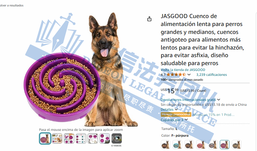 案件分析 此案涉及专利维权,此外原告旗下还注册了多个商标,宠物玩具、游戏、装备、项圈和喂食器多款产品在各大电商平台都十分热销。亚马逊多款产品销售链接留评超过10w+。跨境卖家注意检索下架,避免造成损失!