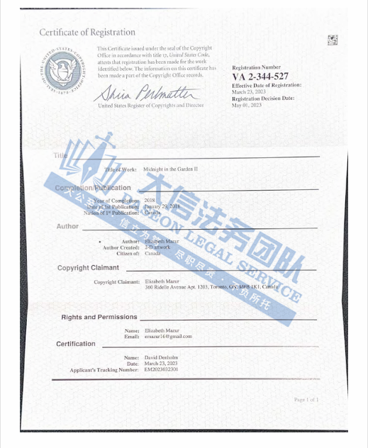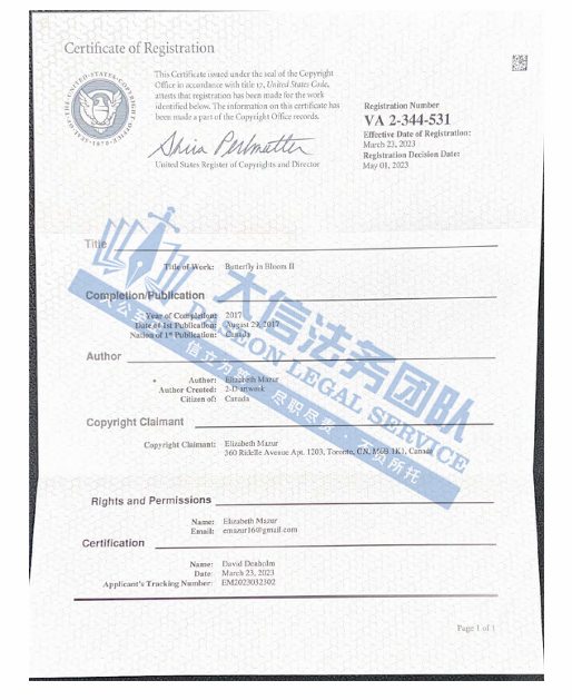 案件分析 此案版权维权,涉及2张蝴蝶以及午夜花园版权,原告在2024年初曾发起维权,时隔10月,再度维权,未经授权不得擅自使用,跨境卖家尽快检索,避免造成侵权损失! 案情进展 产品展示 今天就分享到这里了,感谢你的阅读。大信团队会持续为你带来最新的侵权咨询。想要了解更多内容,可关注我们【大信团队】。 我们始终坚信,法律服务没有捷径,容不得任何滥竽充数的行为。大信法务团队有中美资深律师,在美国TRO诉讼行业深耕多年,处理过上万起TRO侵权案,致力于为中国跨境电商卖家保驾护航! 如果有关于店铺大额资金冻结、同行解决不了、缺席判决、多次谈判博弈无法和解的案子可以添加我们联系方式,我们将为你提供最优质的法律服务。