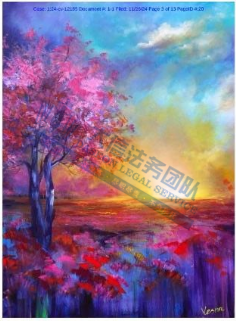 案件分析 此案涉及版权维权,于2024年10月下证的美国版权作品:VA 2-419-862, VA 2-419-864和VA 2-419-866,版权图片还未公开,检索出以下符合作品的信息,除此之外,官网上的其他作品也不能随意使用,否则会有TRO侵权风险! 案情进展 产品展示 03 Vesna Delevska 版权图 案件号:24-cv-12185 立案时间:2024年11月26日 原告:Vesna Delevska 代理律所:Keith 原告介绍 原告是一位来自马其顿的艺术家,她的艺术生涯深受马其顿悠久历史中修道院与教堂内精美肖像画、壁画及马赛克的启发,她擅长对光线与自然风格的敏锐捕捉著称,通过色彩、形状、自然形态及形式的精妙组合,构建了一套个人化的视觉语言,用以传达那些难以言喻的深层情感。她坚信绘画是心灵最直接且亲密的交流方式,曾言:“我画得越多,就越接近真实的自我。”在她的艺术旅程中,不仅完成了多幅壁画及超过3000幅画作,还积极参与各类艺术活动及与地方组织的合作筹款,以艺术之力回馈社会。