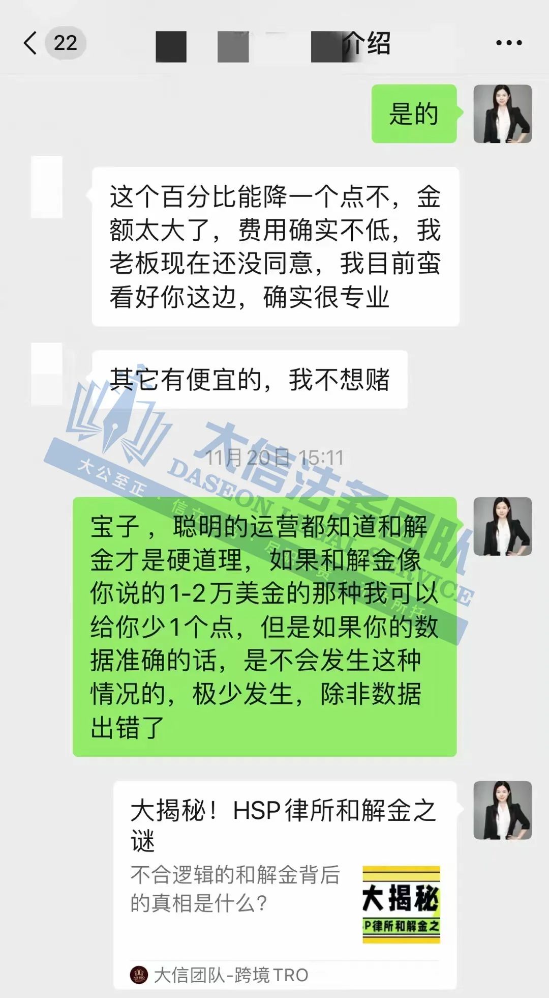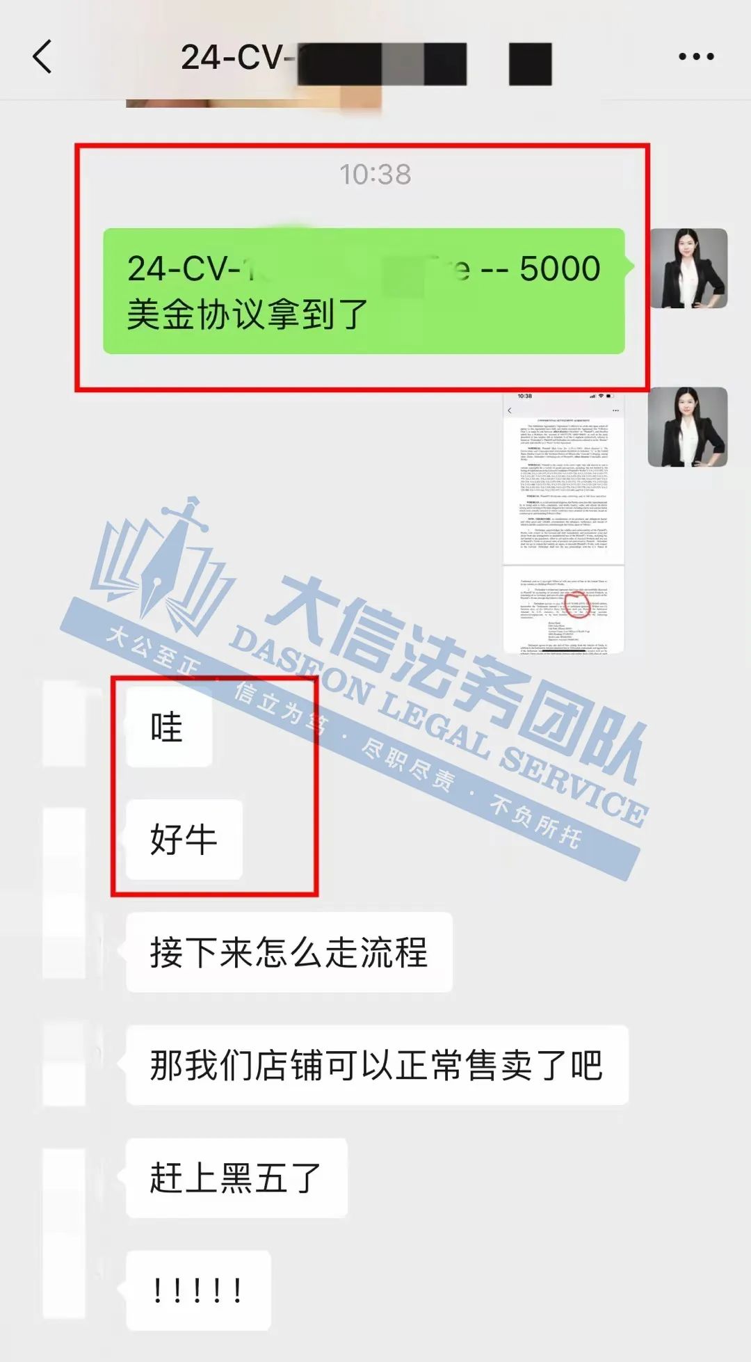 接受委托之后,大信团队迅速介入,凭借丰富的经验和专业的法律知识,与对方进行了多轮激烈的谈判。 最终,不仅成功避开了繁琐的应诉流程,还争取到了令人难以置信的和解金额——仅仅5000美元!完美解决! 这简直就是奇迹啊!要知道,这和解金比例可是低于5%的!