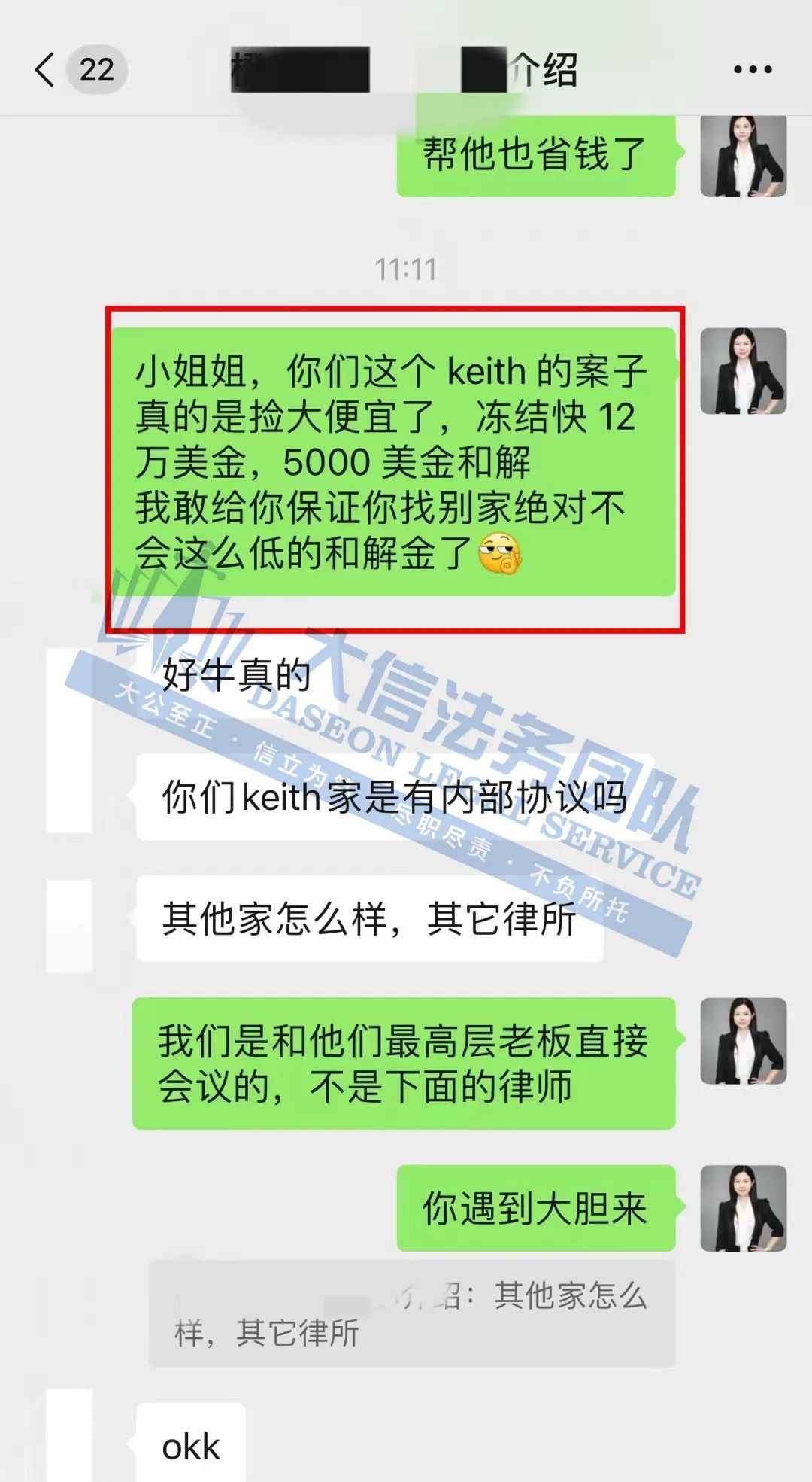 Keith律所和解金比例不足5%!冻结12万美金,仅5000美金解决!一周一轮电话会议快速结案!