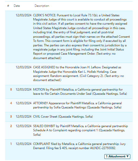 原告是一支来自美国加利福尼亚州。的传奇重金属乐队,成立于 1981 年,他们以高速、激烈的演奏风格和深刻的歌词闻名,是重金属音乐界的开创者之一,也是“Thrash Metal Big Four”(激流金属四巨头)之一。单曲《Enter Sandman》成为全球范围内的标志性作品。截至今日,已售出超过 1.25 亿张专辑,赢得包括格莱美奖在内的众多音乐荣誉。他们不仅是音乐界的顶尖艺术家,也是文化符号,影响了几代重金属音乐爱好者。