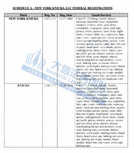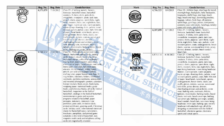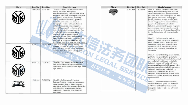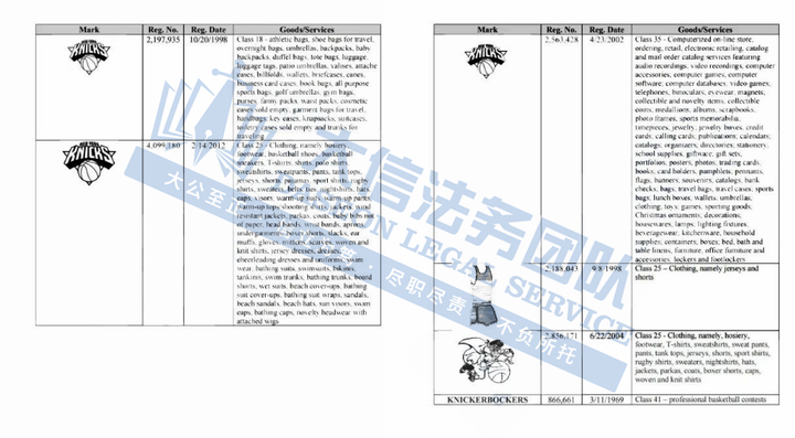 NEW YORK KNICKS纽约尼克斯球队商标维权