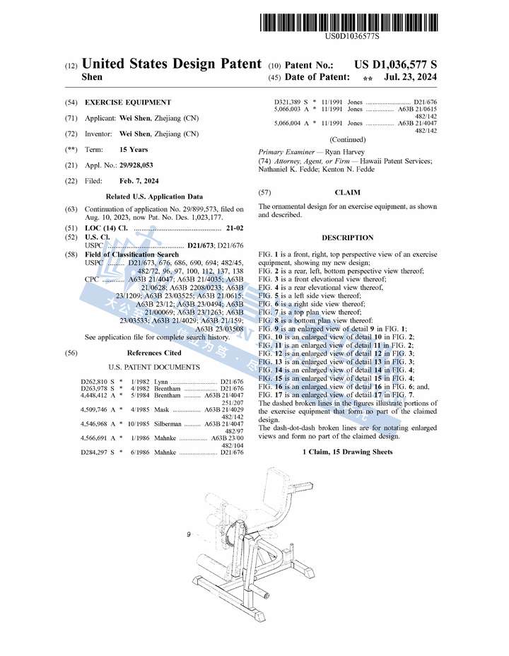 原告品牌为EXERCISE EQUIPMENT,品牌方为WEI SHEN,为国内某健身器材生产品牌。此案涉及的维权产品是腿部伸展训练机,采用先进的线性轴承和易于插拔的设计,能够无缝切换不同的锻炼模式,如腿部伸展、腿弯举和髋部推举,满足多样化的训练需求。无论是伸展还是弯曲动作,都能提供支撑与引导,利于突破训练瓶颈。这款可调节腿部伸展器材,是实现下肢力量升级、塑造体态的理想之选。