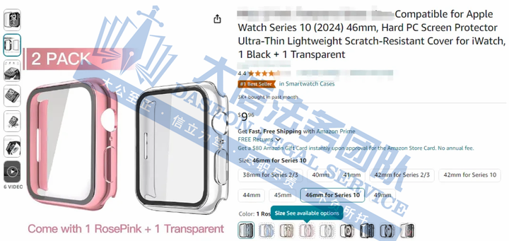 原告来自广东的国人企业,主要从事智能电子产品保护壳设计与销售,旗下有一款专为Apple Watch设计的高品质保护壳,提供全方位的防护功能。这款手表壳采用耐用PC材质,并内置高清钢化玻璃屏幕保护膜,有效防止刮擦、磕碰及意外跌落。在不影响Apple Watch上功能的前提下,具有美观且能有效抵御日常磨损、碰撞及划痕,为手表提供全方位的保护。无论是户外探险、日常通勤还是商务洽谈均适用。