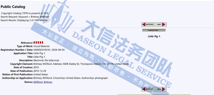 此案为匿名版权维权,涉案版权号为VA 2-410-518和VA 2-410-515的两幅小猪版权画,于2024年6月下证,目前该案件已经冻结34家店铺,涉案卖家尽快处理,其他卖家尽快检索产品下架,避免造成更大的侵权损失!