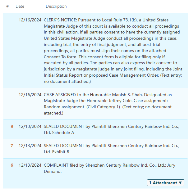 原告:Shenzhen Century Rainbow Ind. Co., Ltd.