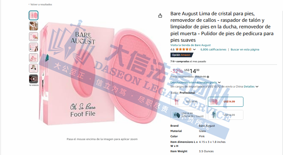 原告是国人卖家,此次发起维权的是一款磨脚石产品,可高效而温和地去除死皮、老茧以及因干燥而产生的鞋跟裂痕,同时针对足部粗糙的角质层进行护理。通过其贴合足部的轮廓与舒适的握持感,享受到专业的修脚体验,提升了个人足部护理的便捷性。