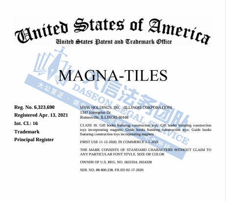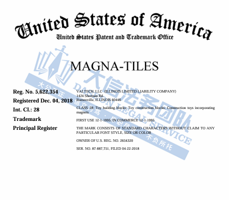 此案为商标维权,关键词:MAGNA-TILES,注册种类主要在第28类,第16类,涉及娱乐相关商品,教育相关产品,相关卖家未经授权不得擅自使用,否则会有TRO侵权风险!