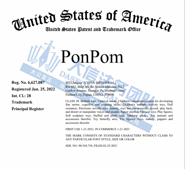 国人玩具品牌ponpom商标维权