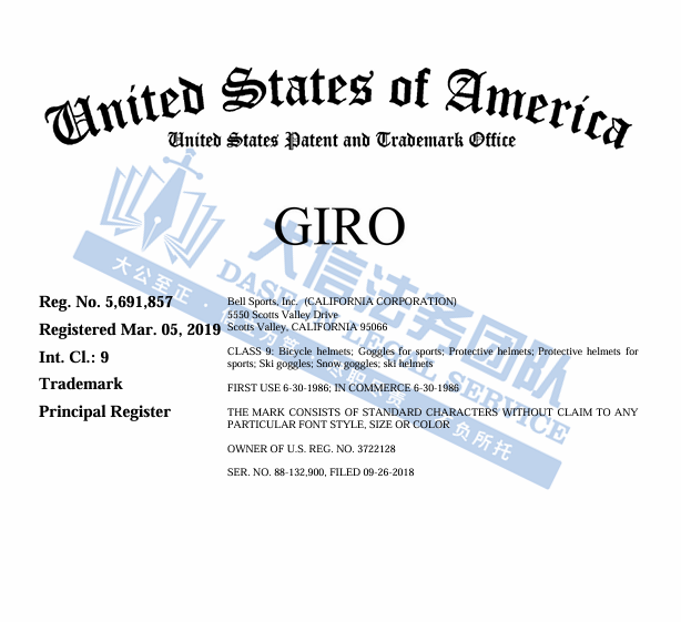 GIRO 体育用品商标维权