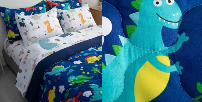 原告是一位家居物品插图领域的艺术家,作品涵盖了恐龙、植物、星星等,作品结合了生动的色彩和细腻的绘画风格,通过精确捕捉恐龙形态的细节,使得每一幅画作都充满了生命力和趣味感。通过独特的艺术表达方式,将恐龙这一主题与家居环境相融合,赋予家居产品更多个性和魅力。其恐龙插图作品被广泛应用于床品、浴帘等家居商品,深受消费者喜爱。