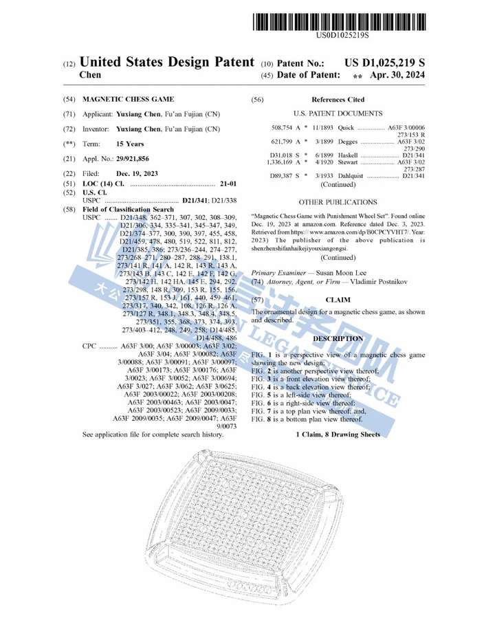 此案为一起匿名专利维权案件,原告旗下有美国外观专利,专利号:US D1,025,219 S;于2024年4月下证。注意,该专利为外观专利,只要外观相似都会有侵权风险!跨境卖家尽快检索下架,避免造成侵权损失!