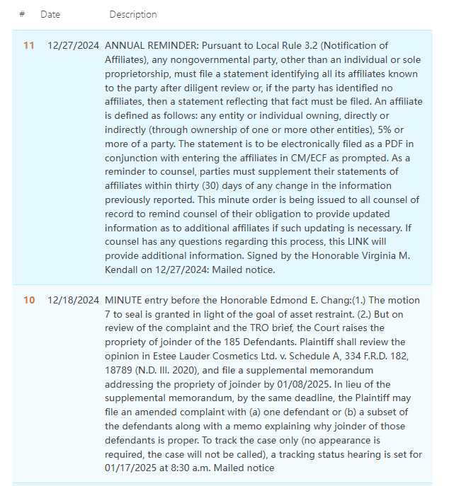 此案为商标维权案件,连发五案,涉及商标众多,跨境卖家一定要尽快检索下架!未经授权不可随意使用,否则会有TRO侵权风险!
