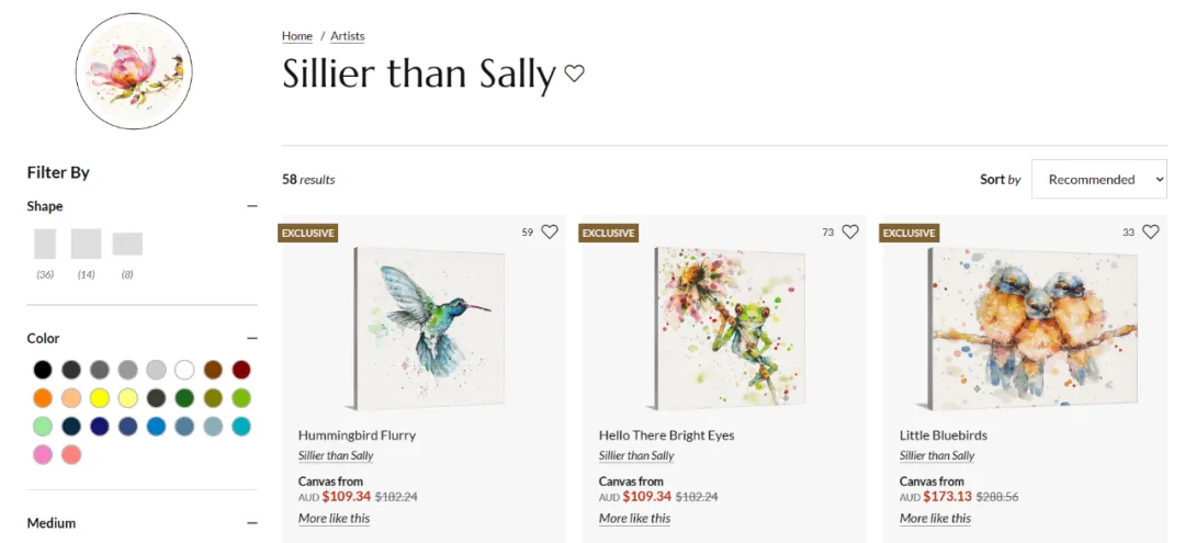 原告是一位复合媒材和水彩画艺术家,她的作品多以花卉、植物和动物为主题, 善于运用柔和的色彩和流动的线条,捕捉光影与细节之间的微妙关系,让作品充满生机与诗意。她的绘画风格宽松自在,明亮的色彩与现实主义形成鲜明对比。她于2011年以“Sillier Than Sally”为名创立了自己的艺术公司,为成人和学生举办面对面和在线研讨会,并授权她的作品用于织物、壁纸、毯子、手机壳、手提袋以及各种家居和生活用品。
