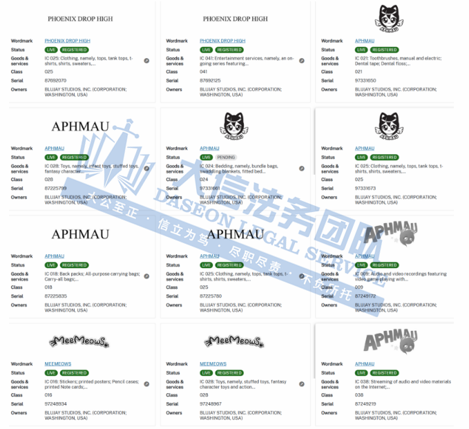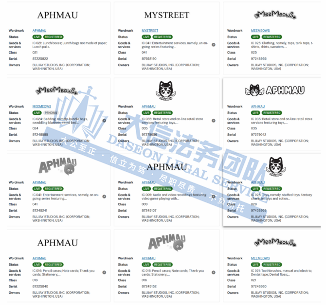 原告Blujay Studios, Inc.也叫蓝吉工作室公司,总部位于美国,Blujay Studios专注于平面设计、视频制作的工作室,而旗下有众多商标,其中就包括这次维权的“APHMAU”,APHMAU是一位才华横溢的 YouTube 游戏主播和 Minecraft 视频创作者,APHMAU的视频作品,核心在于她对角色与故事的精妙融合。每一个视频都是一次沉浸式的冒险,她将观众带入一个既奇幻又真实的Minecraft世界,让角色们的命运与情感深深触动人心。在观众心中留下了深刻的印记。