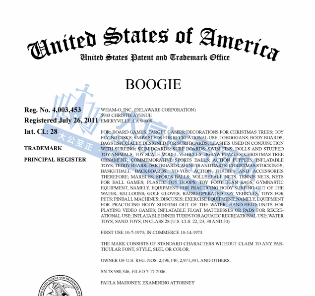 此案为商标维权案件,维权关键词:Boogie,跨境卖家尽快检索下架,未经授权不得擅自使用,否则会面临TRO侵权损失!