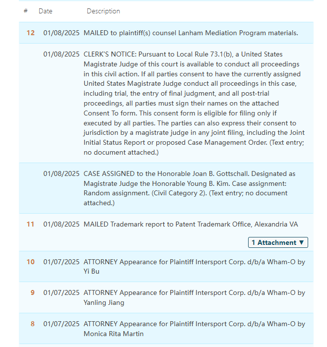 原告:Intersport Corp. d/b/a Wham-O