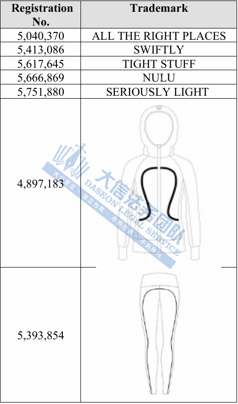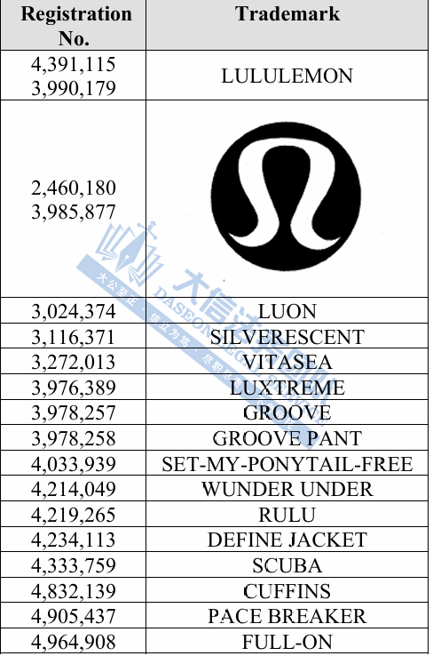 此案为商标维权,共涉及26个图文商标,维权关键词:LULULEMON、LUON、SILVERESCENT、VITASEA、LUXTREME等;未经授权不得擅自使用,跨境卖家要谨慎选品,避免TRO冻结风险!