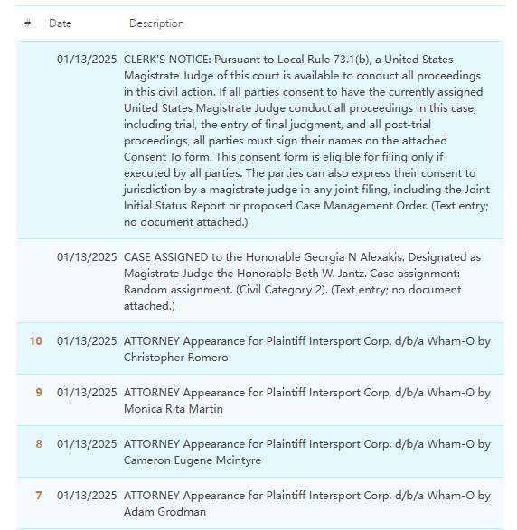 此案为商标维权,涉及原告旗下1个商标词,维权关键词:Hula-Hoop,原告维权力度很大,今年就已经发起【25-cv-00141】Boogie冲浪趴板、【25-cv-00126】飞盘Frisbee两起商标维权,跨境卖家要谨慎选品,避免TRO冻结风险!