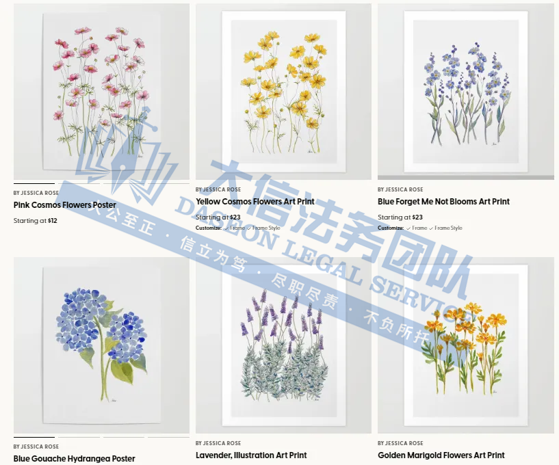 原告是一位来自澳大利亚艺的艺术家,她主要使用水粉和厚涂丙烯颜料创作,作品以花卉和植物为主题,充满自然之美。并巧妙地将对自然的热爱、对白日梦的遐想融入她的艺术作品中,创造出层次丰富、色彩鲜明的艺术作品。其作品不仅限于传统绘画,更延伸至美术版画、家居装饰等多个领域;深受人们的喜爱!