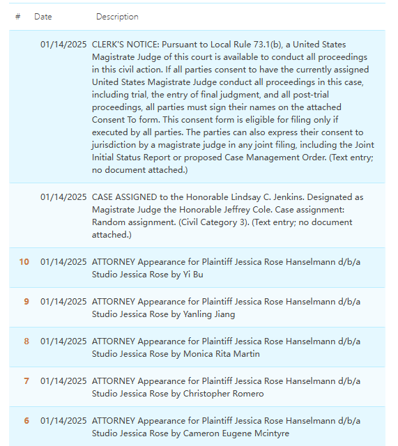 原告:Jessica Rose Hanselmann d/b/a Studio Jessica Rose